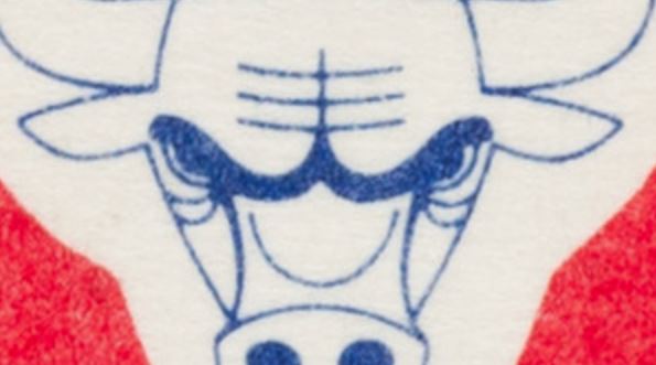 The lines in the eyes of the bull should be separate and cleanly printed. On the reprints, the detail in the eyes is very poor. Below is a high-resolution scan of an authentic card.